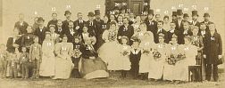 1 - Josef Šimeček, 2 - Bonaventura Šimeček, 5 - František Šimeček, 6 - Anna Šimečková roz. Býma, 7 - Antonín Šimeček, 9 - Melichar Šimeček, 10 - Alžběta Šimečková, 20 - Kateřina Kožaná roz. Matlášek (matka ženicha), 21 - František Šimeček (otec nevěsty), 22 - Alois Bardutzký, 23 - Anna Šimečková roz. Válová (matka nevěsty), 24 - Marie Bardutzká roz. Brustmann, 25 - Marie Anna Kožaná roz. Šimečková (nevěsta), 28 - Paula Sofie Bardutzká, 29 - Antonín Kožaný (ženich), 33 - Hugo Gustav Bardutzký, 34 - Bardutzká, 35 - Helena Šimečková, 43 - Ida Marie Šimečková roz. Bardutzká, 47 - František Šimeček, 49 - Anna Šimečková, 56 - Alois Bardutzký ml.