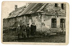 dům č.p. 37 - pohled od cesty (1945) Popis: Marie Hušková roz. Richtrová se svými dětmi