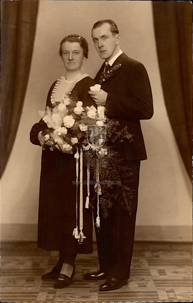svatební fotografie Alois Tichý a Terezie Hedvika Adamčíková. 28. 11. 1931
