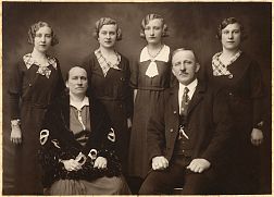 Popis zleva: Cecílie Bartková prov. Pelikánová, Anna Bartková roz. Tichá, Anna Bartková prov. Kravčíková, Marie Bartková prov. Popková, Gabriel Bartek, Gabriela Bartková prov. Hrbáčová