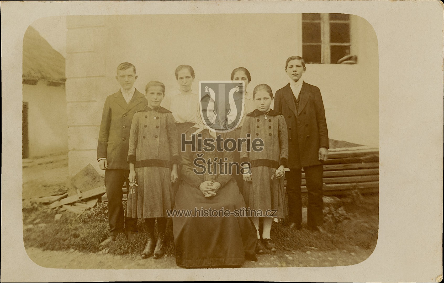 rodina Antonína Kyjovského Popis z levé strany: Jaroslav Kyjovský, Anežka Kyjovská prov. Maiwaelderová, Julie Kyjovská prov. Hartmannová, Anna Marie Kyjovská roz. Malohlavová, Marie Kyjovská prov. Binerová, Anna Kyjovská, Štěpán Kyjovský
